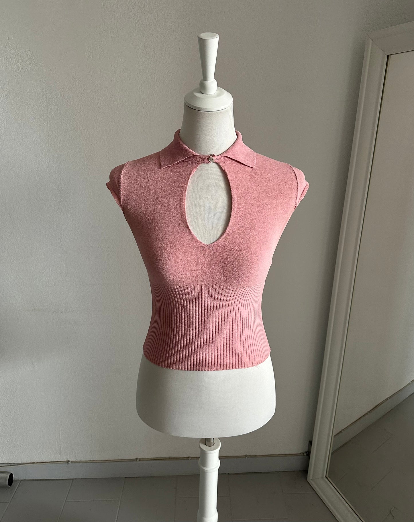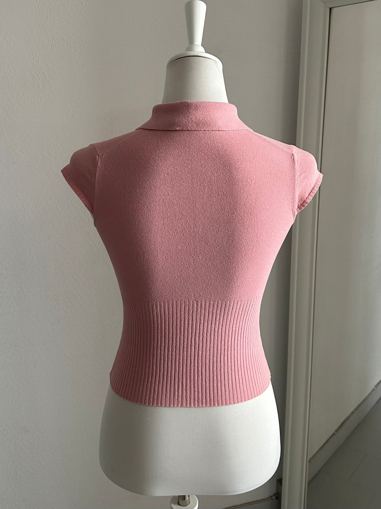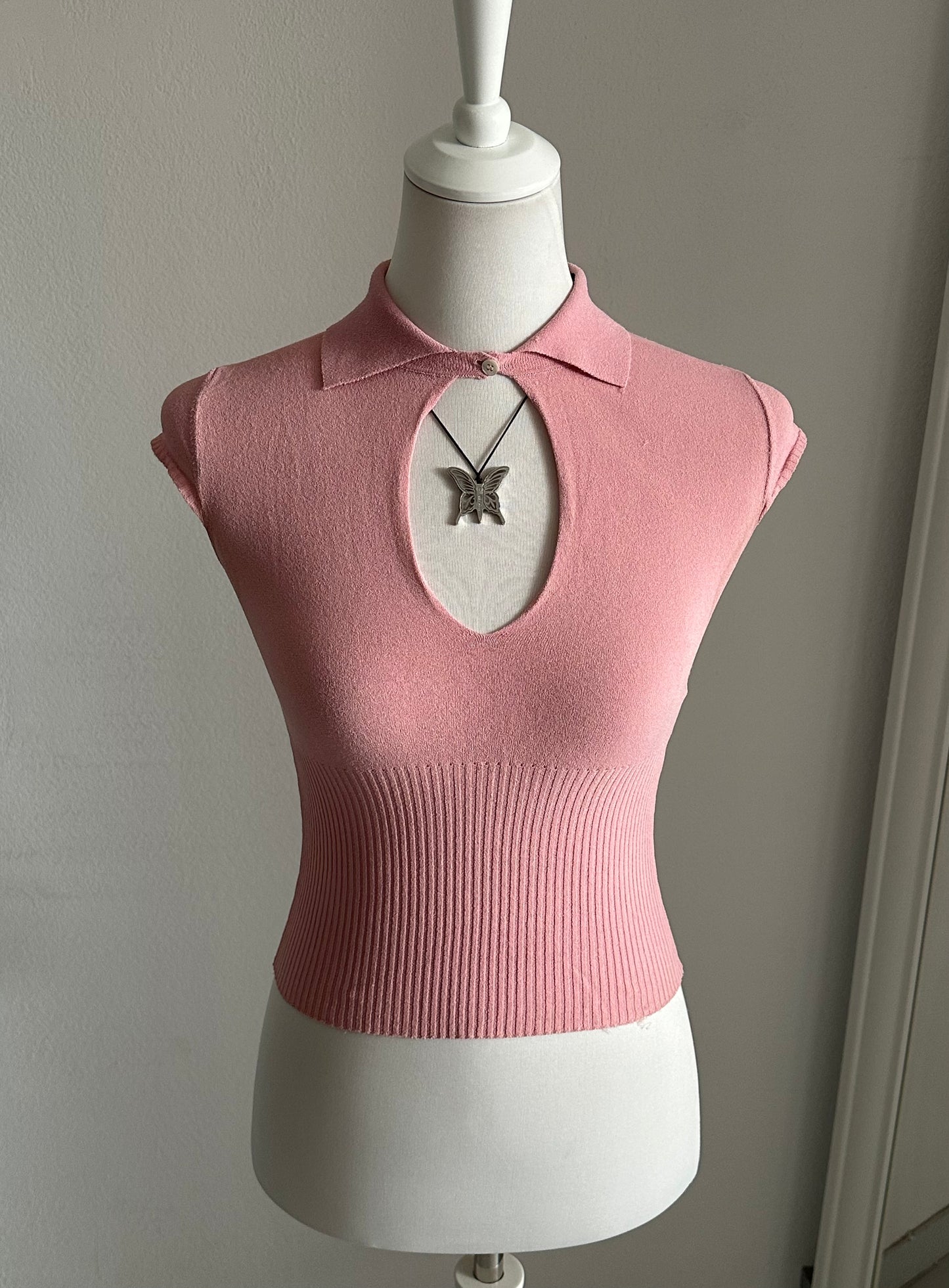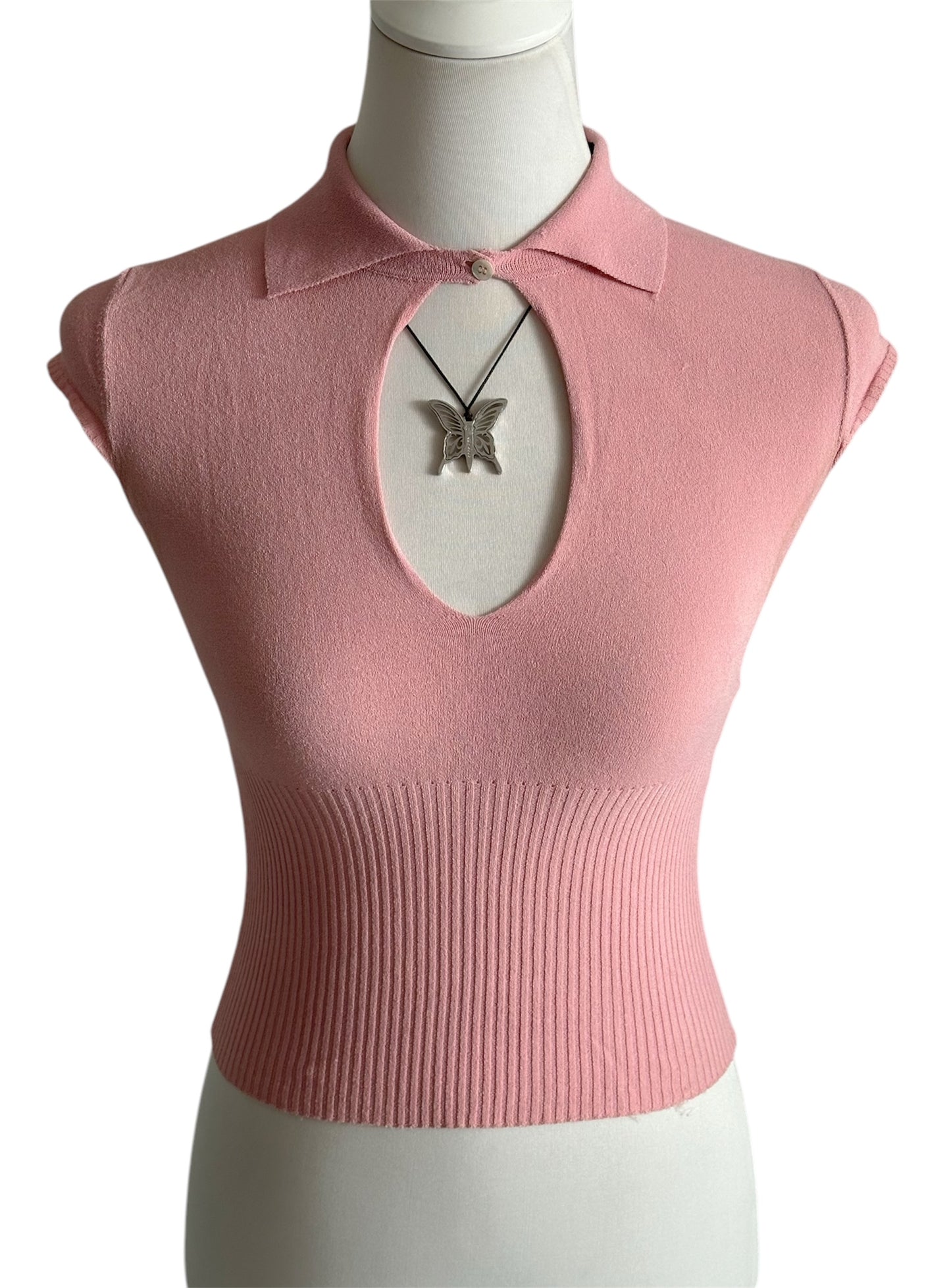 T-shirt court coquette collector rose ajouré à l’avant avec bouton